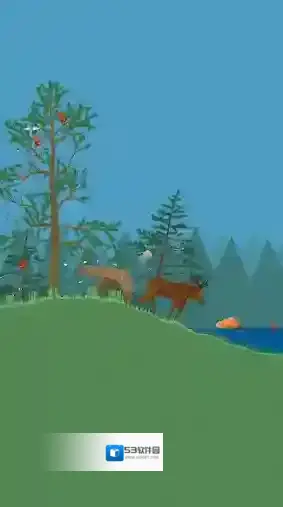 点击动物会触发不同的行为,影响森林的生态系统:驼鹿排便,为土壤施肥。田鼠啃食树根,破坏树木。狐狸会捕猎其他动物。
